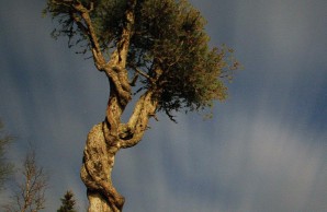 The Witch Tree, as it was later named, likely began life in a fissure in the granite rock that lines the lake. There it survived gales, ice floes, and blizzards—for a time. Then an unknown event, perhaps a lightning strike, damaged the tree’s crown but left its main root alive. A root sprout arose, entwining the original trunk.