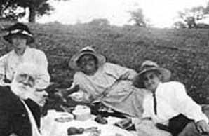 Picnics are popular on Norfolk. “Uncle” Cornish, the benevolent guide of the author of this article, is shown here. He is a grandson of Matthew Quintal, a mutineer.